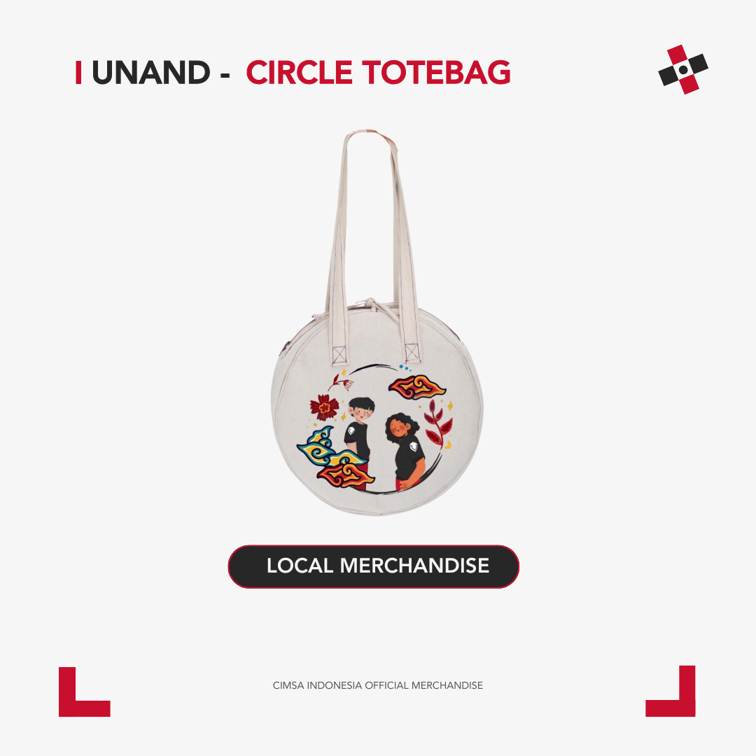 Canvas circle totebag with a zipper, side pocket, 35 cm diameter, 7 cm width, and 70 cm handle. For order contact LINE: kaisa_kamila or WA: 0895615311322